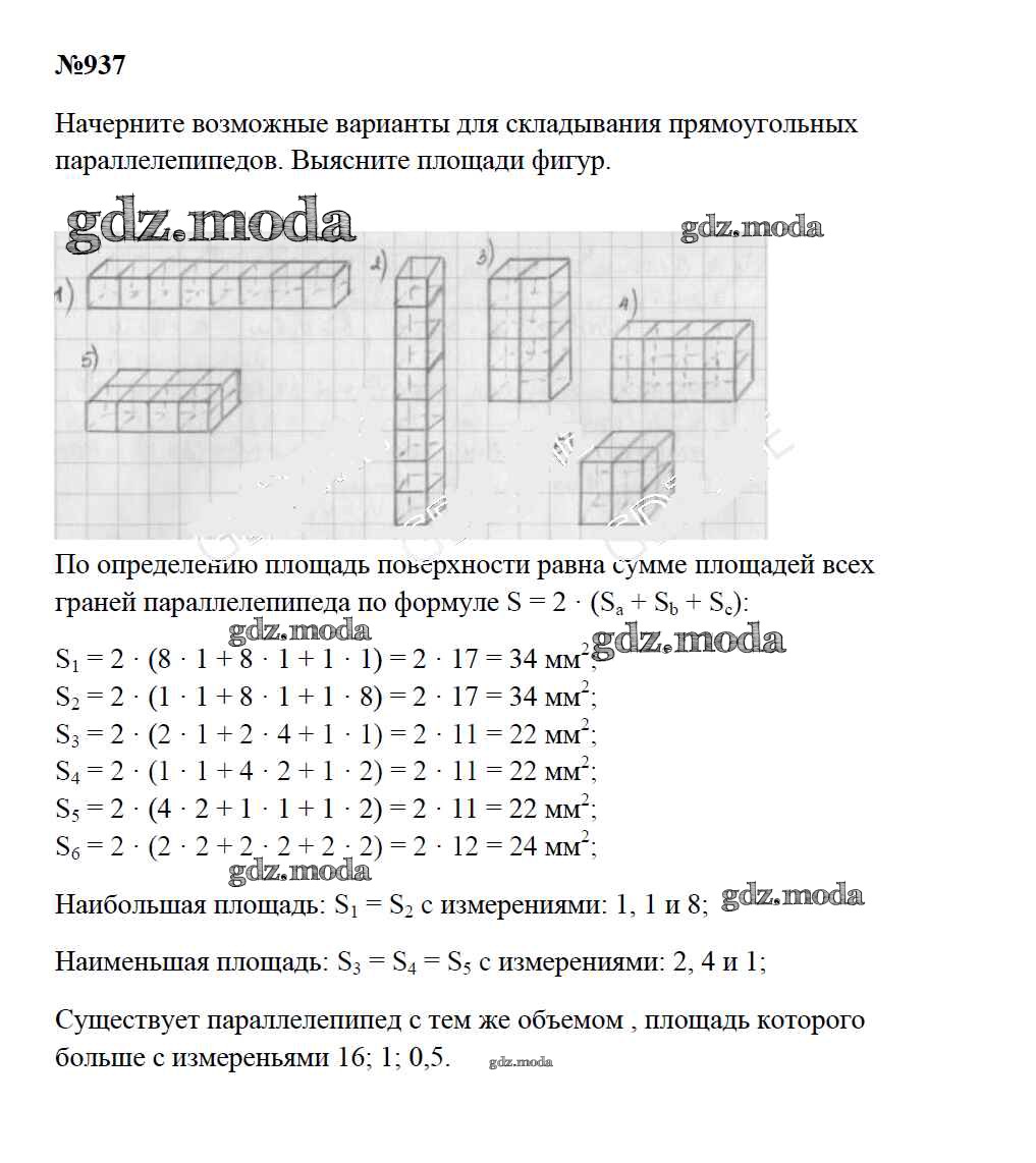 ОТВЕТ на задание № 937 Учебник по Математике 5 класс Зубарева