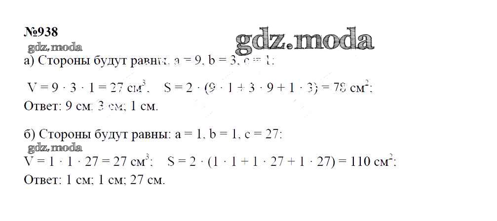 ОТВЕТ на задание № 938 Учебник по Математике 5 класс Зубарева