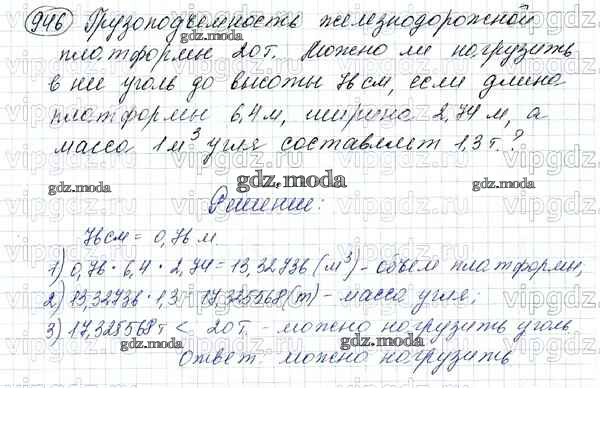 ОТВЕТ на задание № 946 Учебник по Математике 5 класс Зубарева