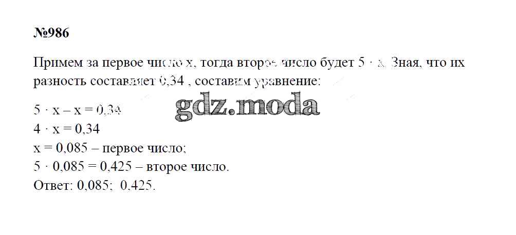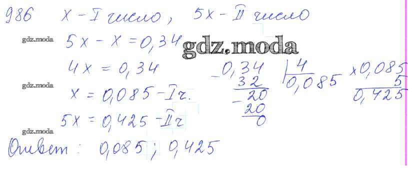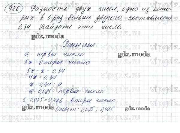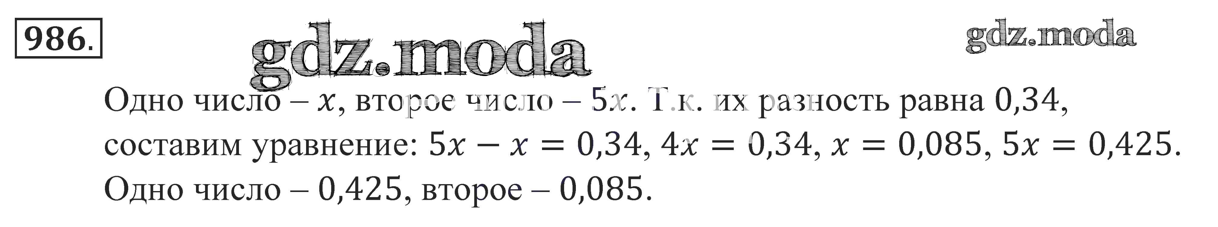 ОТВЕТ на задание № 986 Учебник по Математике 5 класс Зубарева