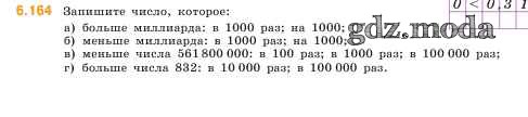 ОТВЕТ на задание № 6.164 Учебник по Математике 5 класс Виленкин Базовый уровень