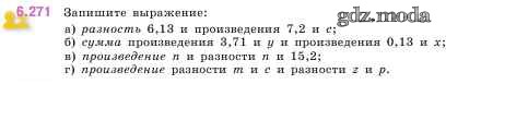 ГДЗ решение к заданию № 6.271 Математика 5 класс Виленкин Н.Я. Просвещение 2023 Часть 2 Базовый уровень ФГОС бесплатно на гдз.мода!