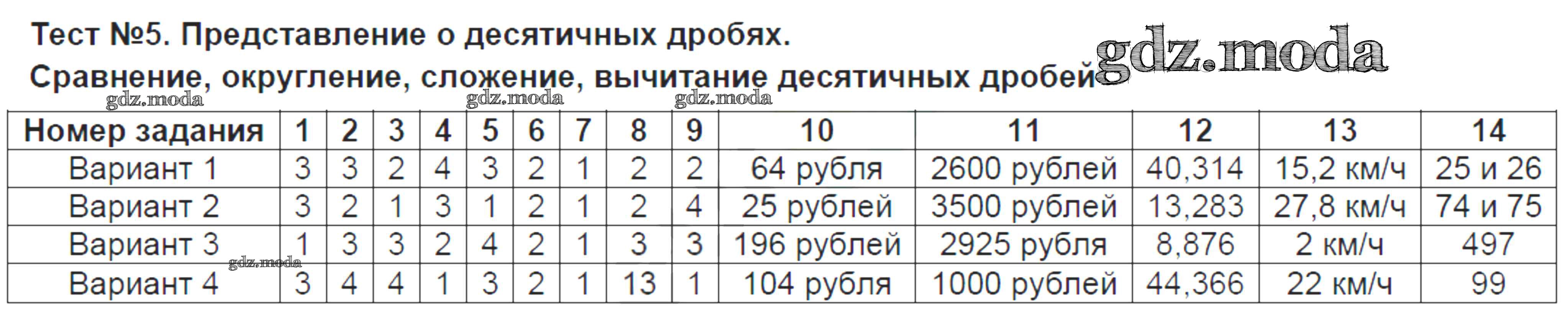 ГДЗ решение к заданию № Тест №5. Представление о десятичных дробях Математика 5 класс тесты Ерина Т.М. (к уч. Мерзляка) Экзамен 2017 ФГОС бесплатно на гдз.мода!