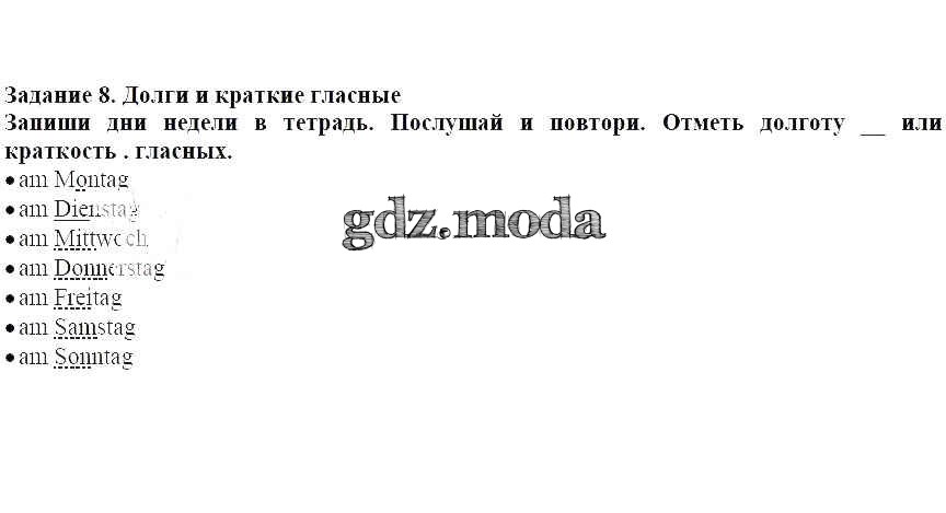 ГДЗ решение к заданию № 8 Немецкий язык 5 класс Аверин М.М. Просвещение 2016 ФГОС бесплатно на гдз.мода!