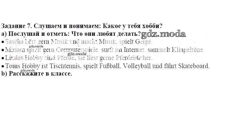 ГДЗ решение к заданию № 7 Немецкий язык 5 класс Аверин М.М. Просвещение 2016 ФГОС бесплатно на гдз.мода!