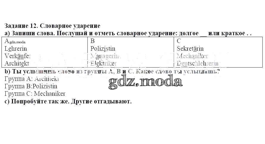 ГДЗ решение к заданию № 12 Немецкий язык 5 класс Аверин М.М. Просвещение 2016 ФГОС бесплатно на гдз.мода!