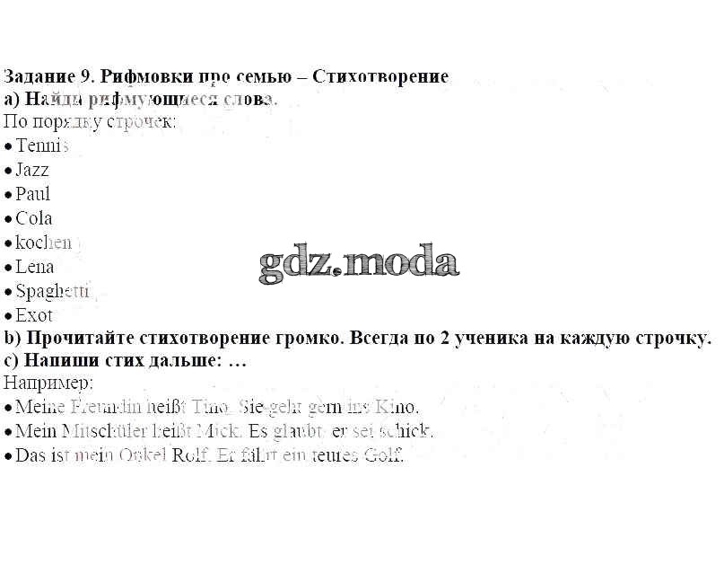 ГДЗ решение к заданию № 9 Немецкий язык 5 класс Аверин М.М. Просвещение 2016 ФГОС бесплатно на гдз.мода!