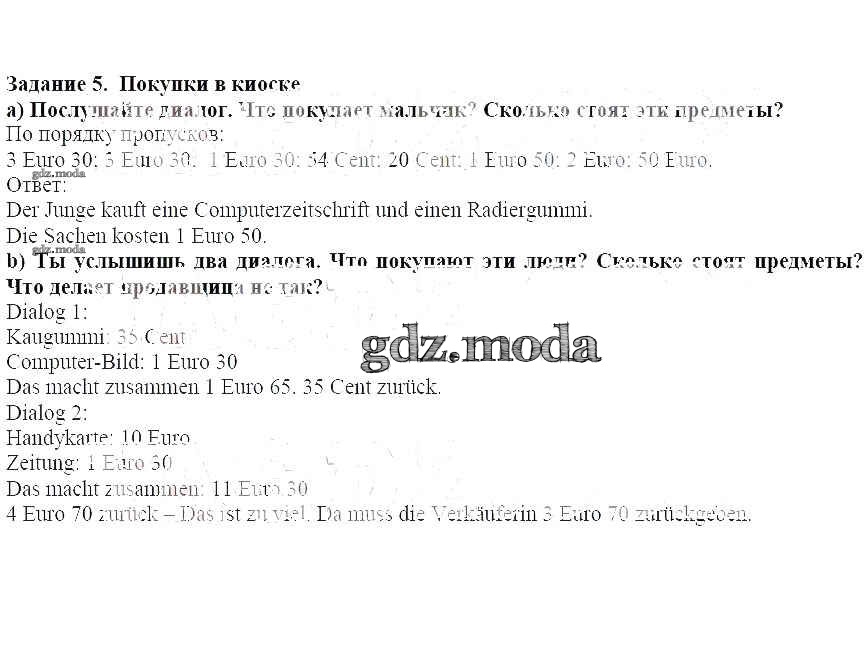 ГДЗ решение к заданию № 5 Немецкий язык 5 класс Аверин М.М. Просвещение 2016 ФГОС бесплатно на гдз.мода!
