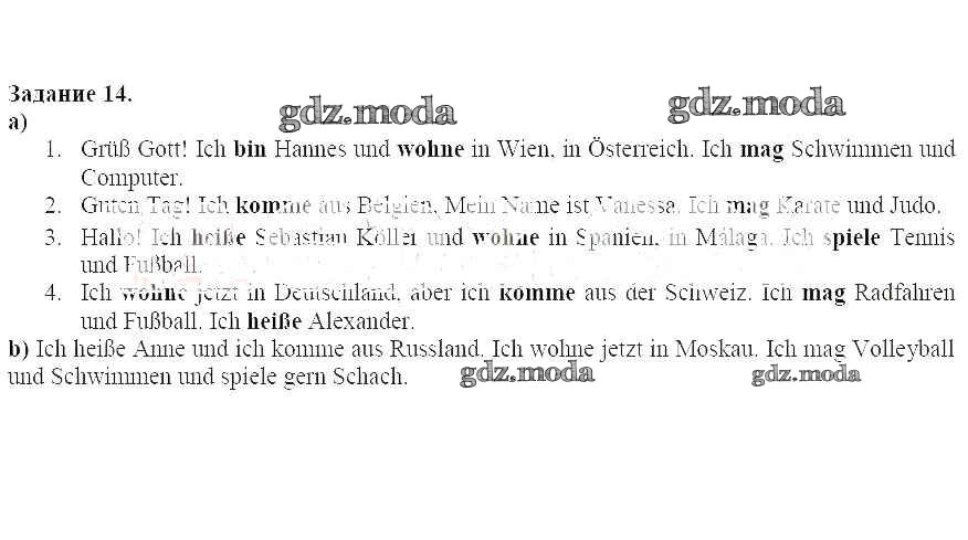 ГДЗ решение к заданию № 14 Немецкий язык 5 класс рабочая тетрадь Аверин М.М. Просвещение 2020 ФГОС бесплатно на гдз.мода!