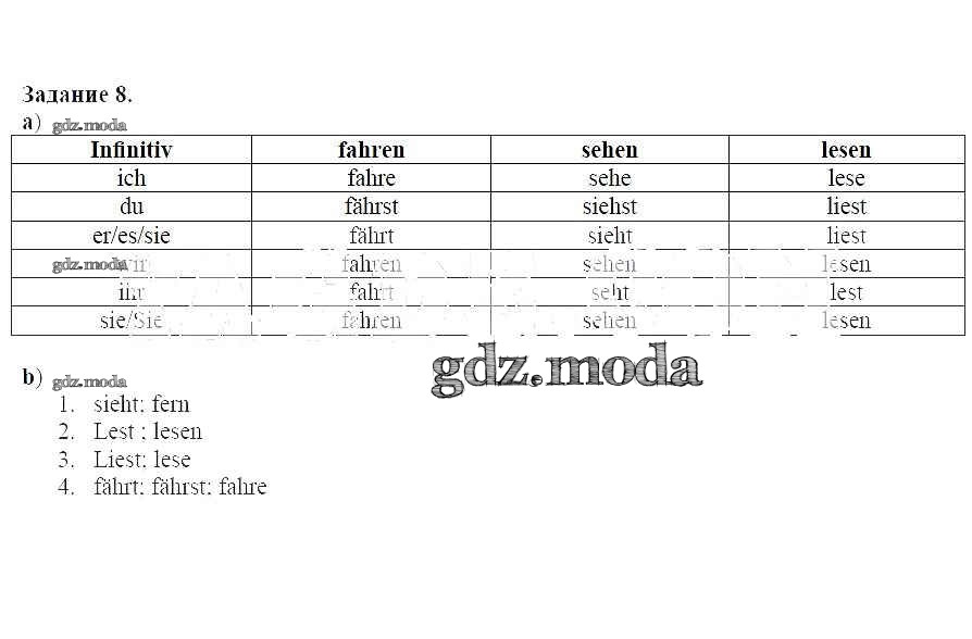 ГДЗ решение к заданию № 8 Немецкий язык 5 класс рабочая тетрадь Аверин М.М. Просвещение 2020 ФГОС бесплатно на гдз.мода!