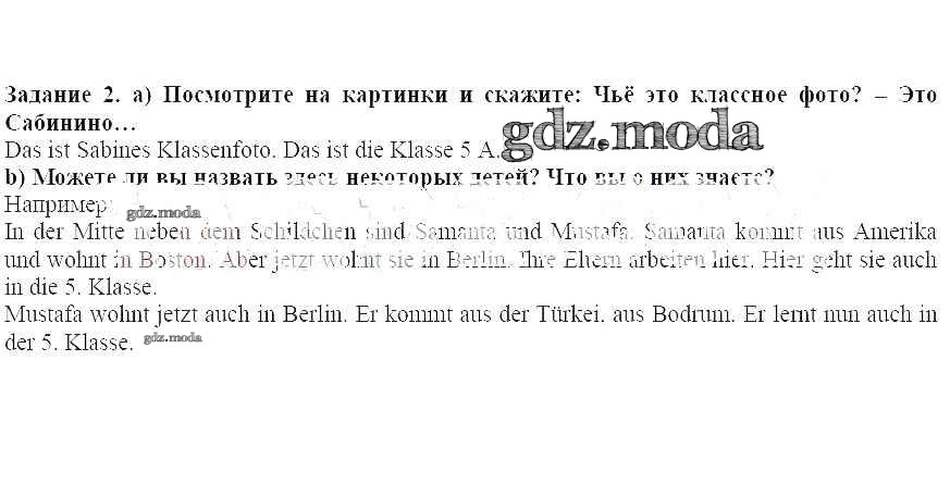 ГДЗ решение к заданию № 2 Немецкий язык 5 класс Бим И.Л. Просвещение 2019 ФГОС бесплатно на гдз.мода!