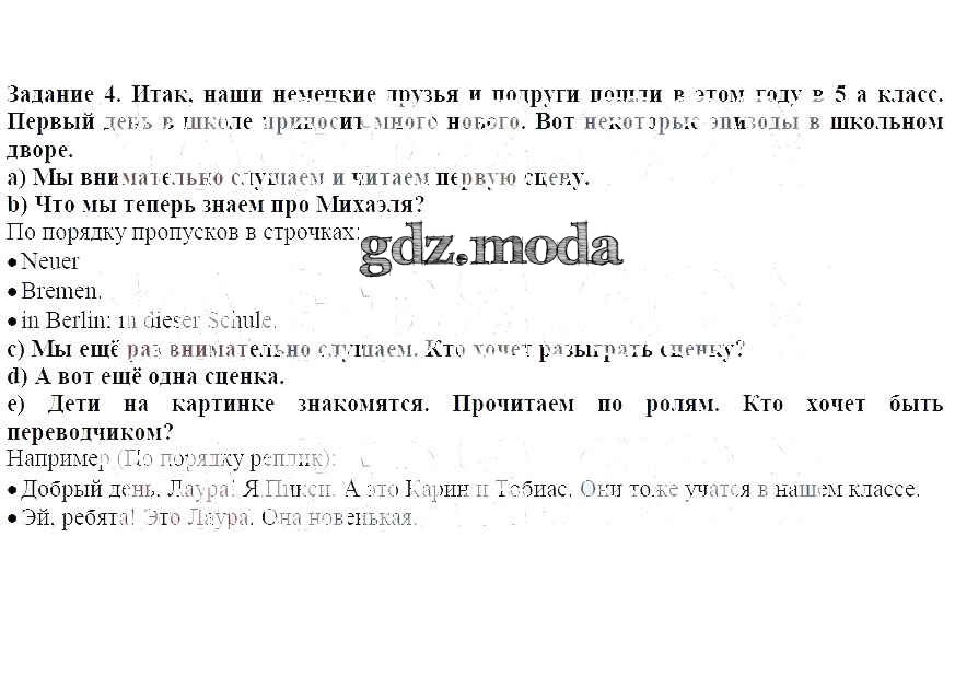 ГДЗ решение к заданию № 4 Немецкий язык 5 класс Бим И.Л. Просвещение 2019 ФГОС бесплатно на гдз.мода!