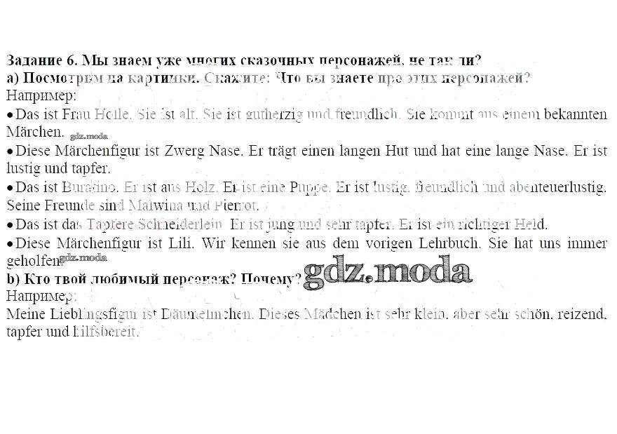 ГДЗ решение к заданию № 6 Немецкий язык 5 класс Бим И.Л. Просвещение 2019 ФГОС бесплатно на гдз.мода!