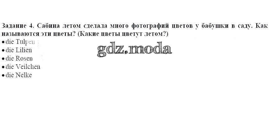 ГДЗ решение к заданию № 4 Немецкий язык 5 класс Бим И.Л. Просвещение 2019 ФГОС бесплатно на гдз.мода!