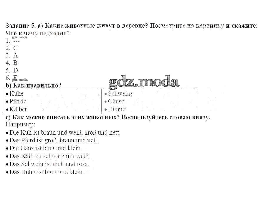 ГДЗ решение к заданию № 5 Немецкий язык 5 класс Бим И.Л. Просвещение 2019 ФГОС бесплатно на гдз.мода!