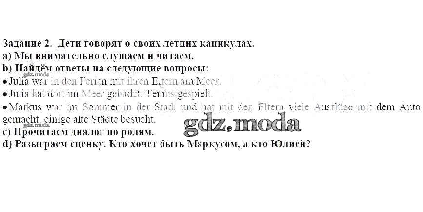 ГДЗ решение к заданию № 2 Немецкий язык 5 класс Бим И.Л. Просвещение 2019 ФГОС бесплатно на гдз.мода!
