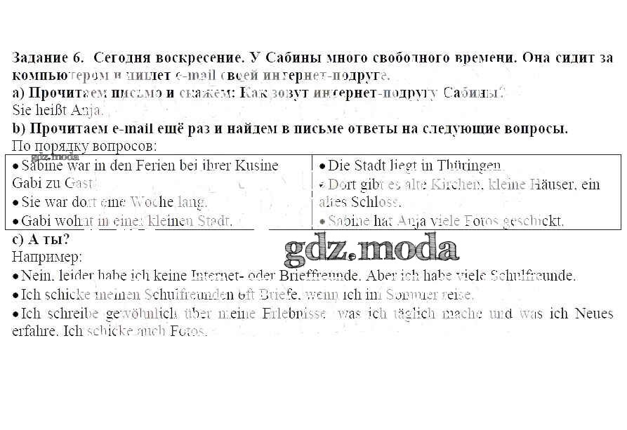 ОТВЕТ на задание № 6 Учебник по Немецкому языку 5 класс Бим