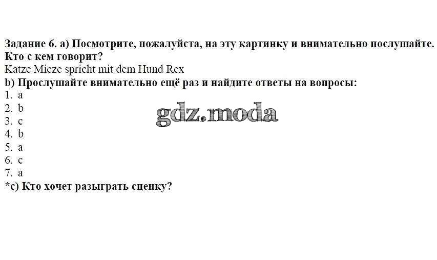 ГДЗ решение к заданию № 6 Немецкий язык 5 класс Бим И.Л. Просвещение 2019 ФГОС бесплатно на гдз.мода!