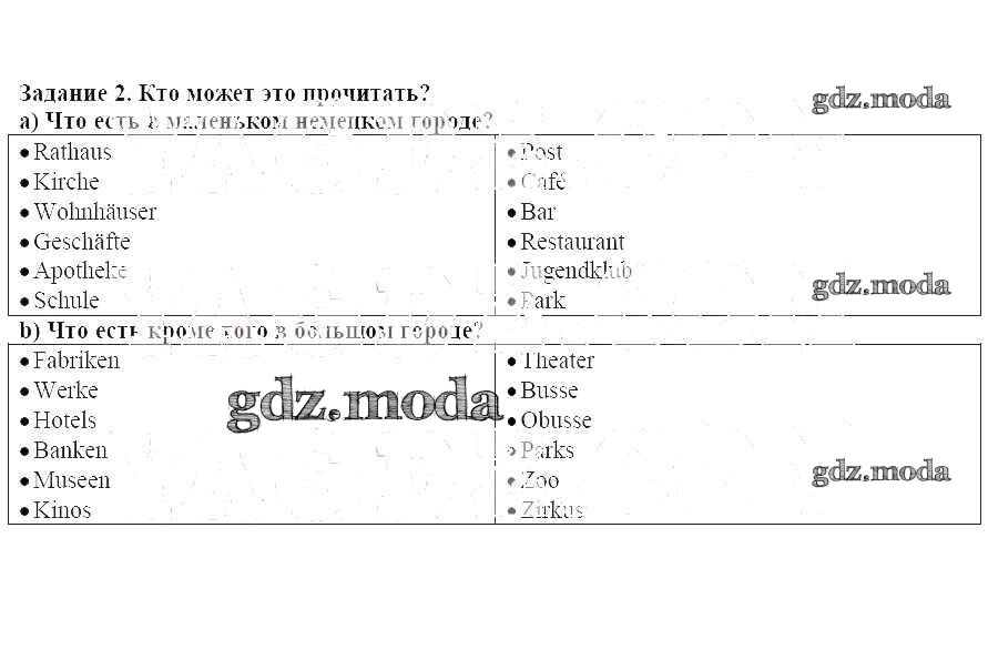 ГДЗ решение к заданию № 2 Немецкий язык 5 класс Бим И.Л. Просвещение 2019 ФГОС бесплатно на гдз.мода!