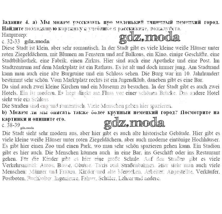 ГДЗ решение к заданию № 4 Немецкий язык 5 класс Бим И.Л. Просвещение 2019 ФГОС бесплатно на гдз.мода!