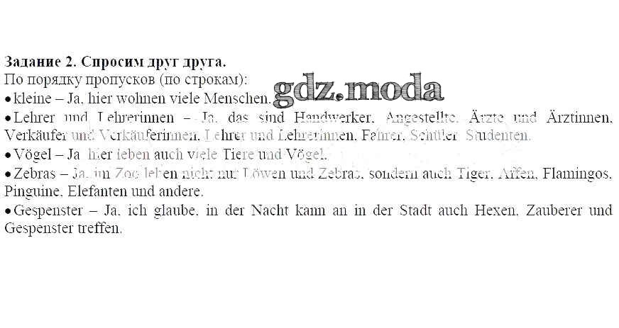 ГДЗ решение к заданию № 2 Немецкий язык 5 класс Бим И.Л. Просвещение 2019 ФГОС бесплатно на гдз.мода!