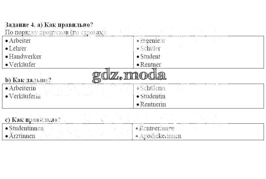 ГДЗ решение к заданию № 4 Немецкий язык 5 класс Бим И.Л. Просвещение 2019 ФГОС бесплатно на гдз.мода!