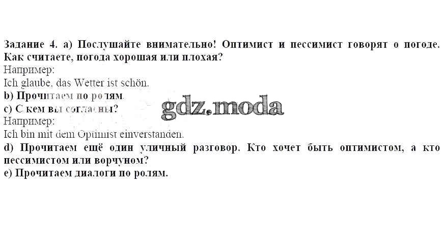 ГДЗ решение к заданию № 4 Немецкий язык 5 класс Бим И.Л. Просвещение 2019 ФГОС бесплатно на гдз.мода!