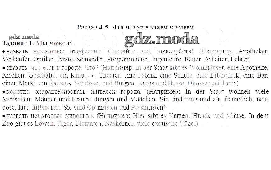 ОТВЕТ на задание № 1 Учебник по Немецкому языку 5 класс Бим