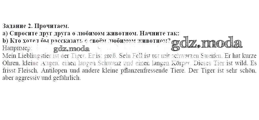 ГДЗ решение к заданию № 2 Немецкий язык 5 класс Бим И.Л. Просвещение 2019 ФГОС бесплатно на гдз.мода!