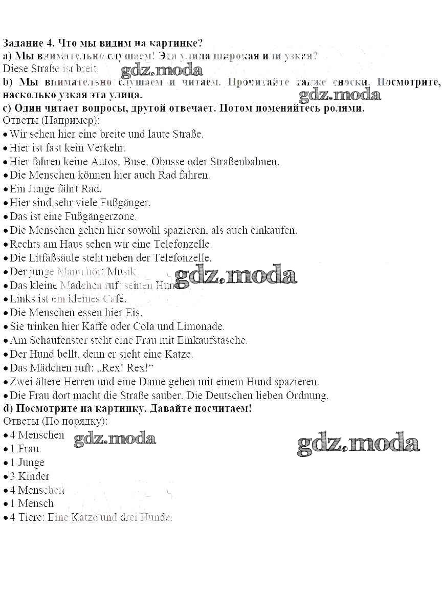 ГДЗ решение к заданию № 4 Немецкий язык 5 класс Бим И.Л. Просвещение 2019 ФГОС бесплатно на гдз.мода!