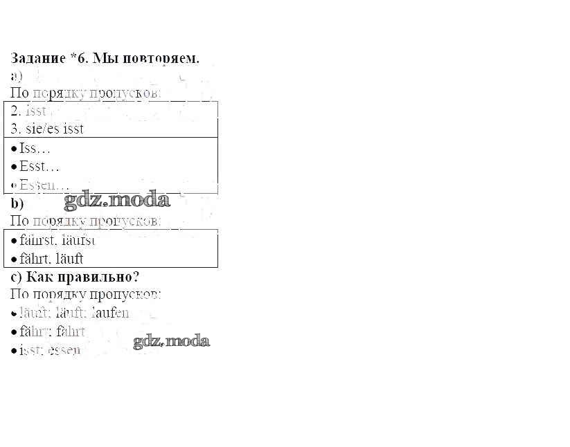 ГДЗ решение к заданию № 6 Немецкий язык 5 класс Бим И.Л. Просвещение 2019 ФГОС бесплатно на гдз.мода!