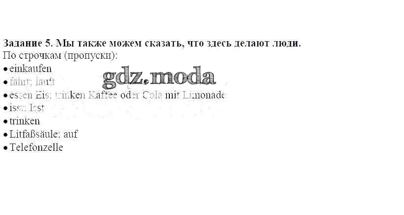 ГДЗ решение к заданию № 5 Немецкий язык 5 класс Бим И.Л. Просвещение 2019 ФГОС бесплатно на гдз.мода!