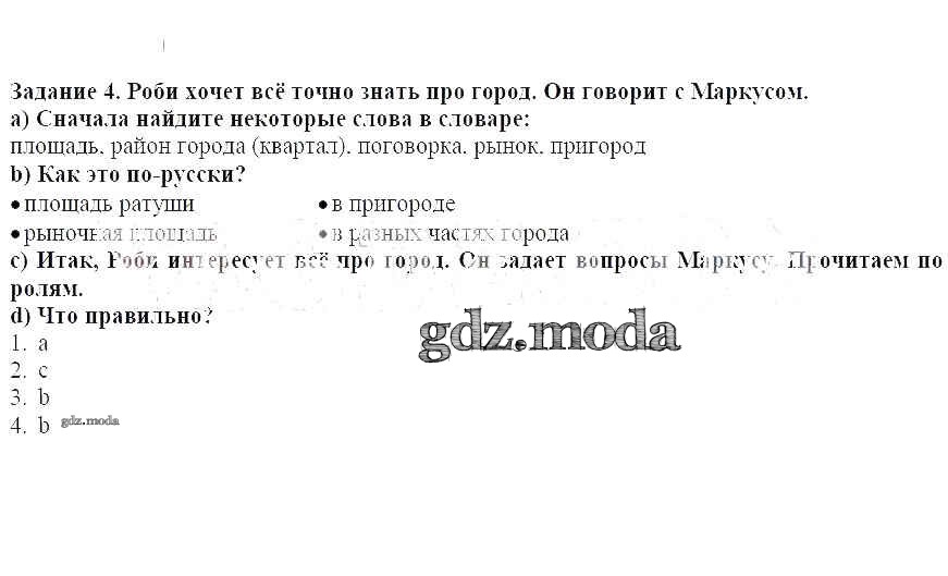 ГДЗ решение к заданию № 4 Немецкий язык 5 класс Бим И.Л. Просвещение 2019 ФГОС бесплатно на гдз.мода!