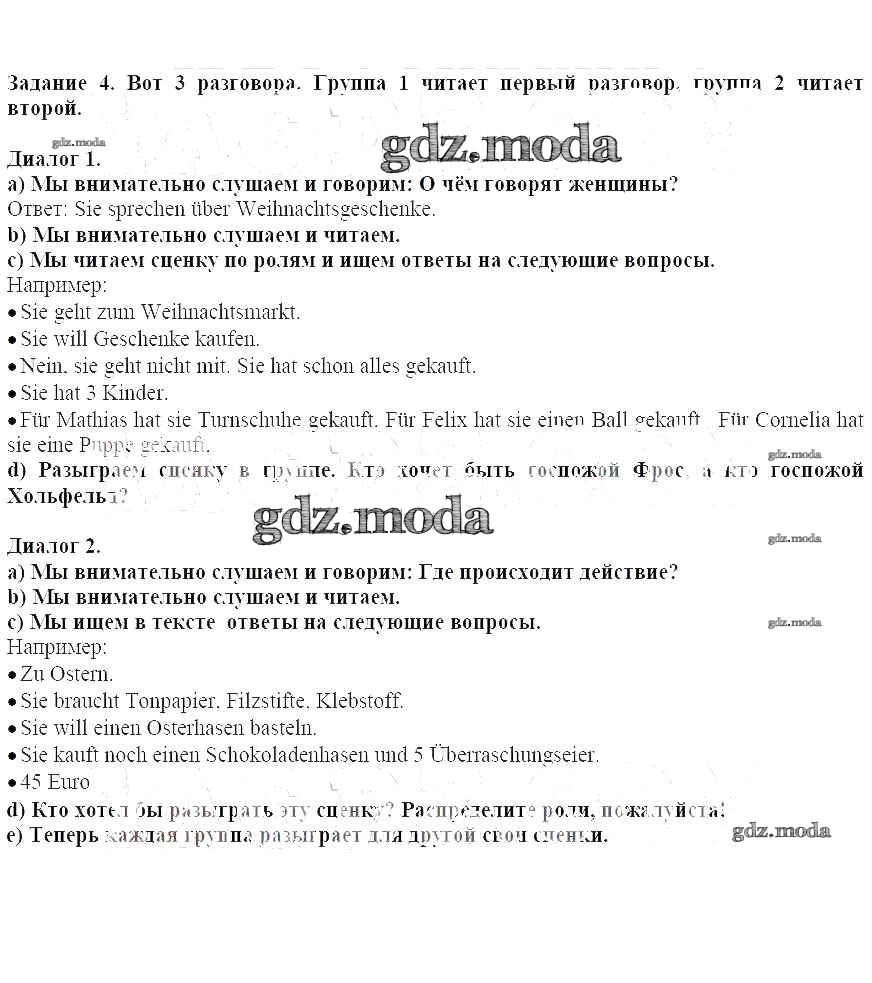 ГДЗ решение к заданию № 4 Немецкий язык 5 класс Бим И.Л. Просвещение 2019 ФГОС бесплатно на гдз.мода!