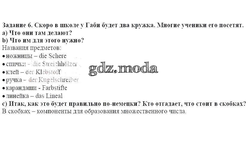 ГДЗ решение к заданию № 6 Немецкий язык 5 класс Бим И.Л. Просвещение 2019 ФГОС бесплатно на гдз.мода!