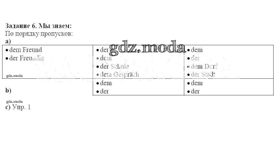 ГДЗ решение к заданию № 6 Немецкий язык 5 класс Бим И.Л. Просвещение 2019 ФГОС бесплатно на гдз.мода!