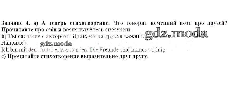 ГДЗ решение к заданию № 4 Немецкий язык 5 класс Бим И.Л. Просвещение 2019 ФГОС бесплатно на гдз.мода!