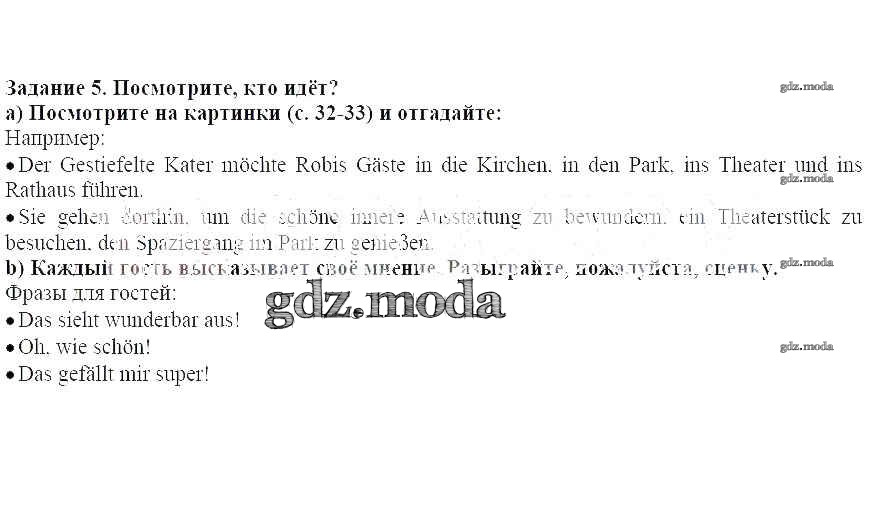 ГДЗ решение к заданию № 5 Немецкий язык 5 класс Бим И.Л. Просвещение 2019 ФГОС бесплатно на гдз.мода!