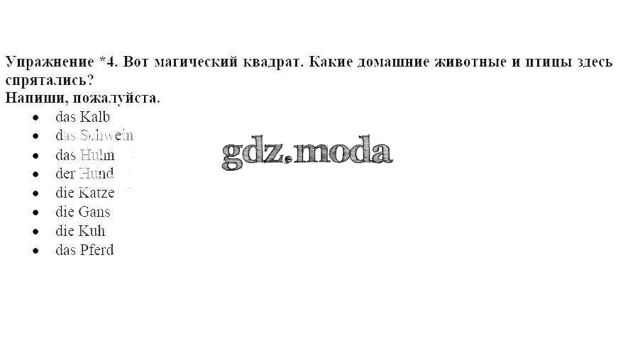 ГДЗ решение к заданию № 4 Немецкий язык 5 класс рабочая тетрадь Бим И.Л. Просвещение 2005 ФГОС бесплатно на гдз.мода!