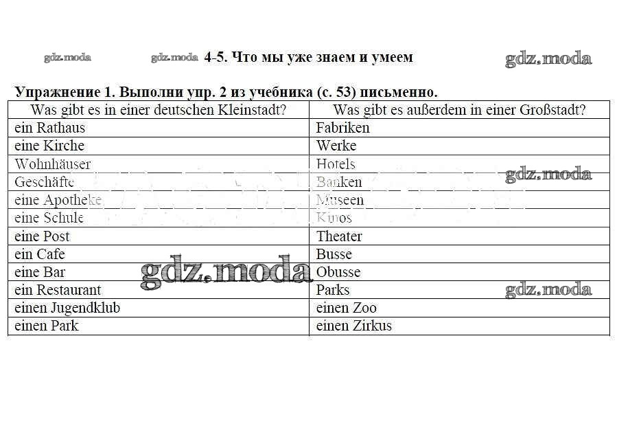 ГДЗ решение к заданию № 1 Немецкий язык 5 класс рабочая тетрадь Бим И.Л. Просвещение 2005 ФГОС бесплатно на гдз.мода!