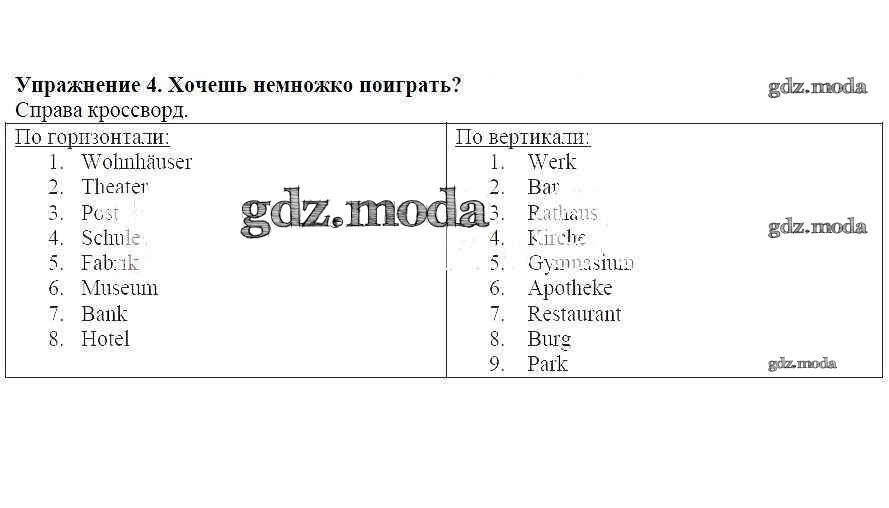 ГДЗ решение к заданию № 4 Немецкий язык 5 класс рабочая тетрадь Бим И.Л. Просвещение 2005 ФГОС бесплатно на гдз.мода!