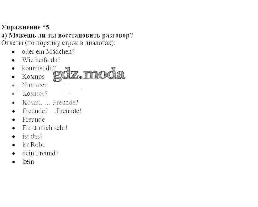 ГДЗ решение к заданию № 5 Немецкий язык 5 класс рабочая тетрадь Бим И.Л. Просвещение 2005 ФГОС бесплатно на гдз.мода!