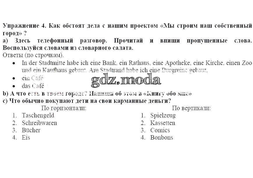 ГДЗ решение к заданию № 4 Немецкий язык 5 класс рабочая тетрадь Бим И.Л. Просвещение 2005 ФГОС бесплатно на гдз.мода!