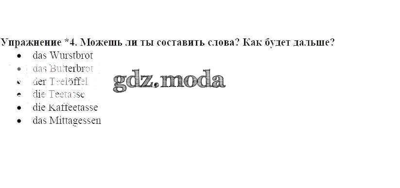 ГДЗ решение к заданию № 4 Немецкий язык 5 класс рабочая тетрадь Бим И.Л. Просвещение 2005 ФГОС бесплатно на гдз.мода!