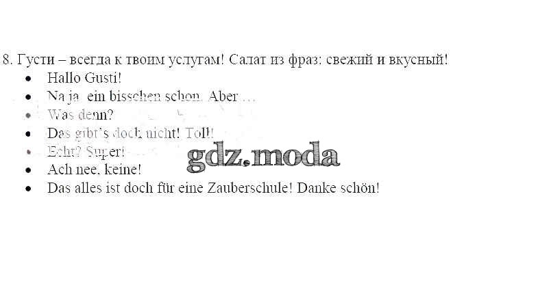 ГДЗ решение к заданию № 8 Немецкий язык 5 класс рабочая тетрадь Яцковская Г.В. Просвещение 2019 Часть 1, Часть 2, Часть 3, Часть 4 ФГОС бесплатно на гдз.мода!