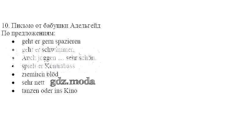 ГДЗ решение к заданию № 10 Немецкий язык 5 класс рабочая тетрадь Яцковская Г.В. Просвещение 2019 Часть 1, Часть 2, Часть 3, Часть 4 ФГОС бесплатно на гдз.мода!
