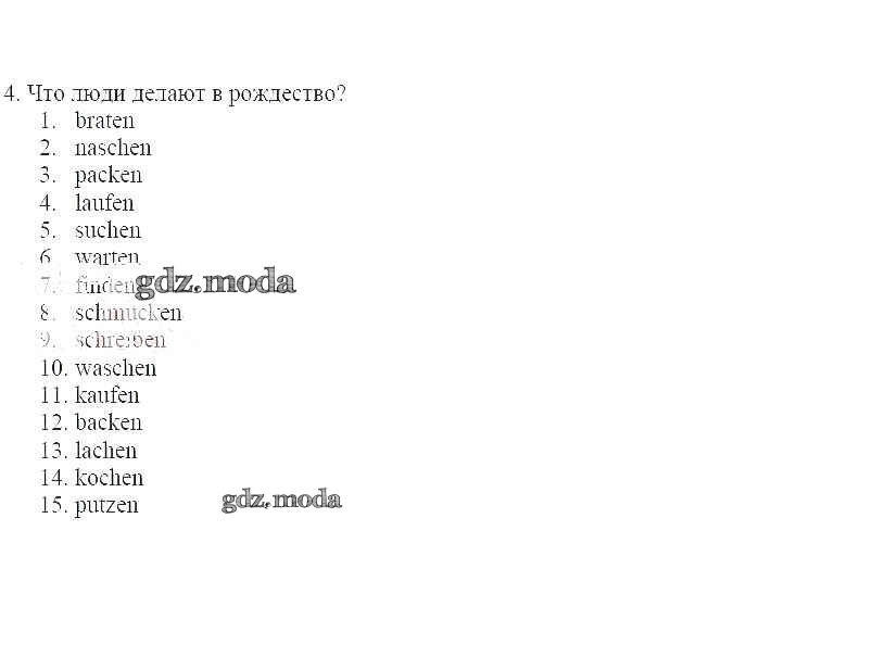 ГДЗ решение к заданию № 4 Немецкий язык 5 класс рабочая тетрадь Яцковская Г.В. Просвещение 2019 Часть 1, Часть 2, Часть 3, Часть 4 ФГОС бесплатно на гдз.мода!