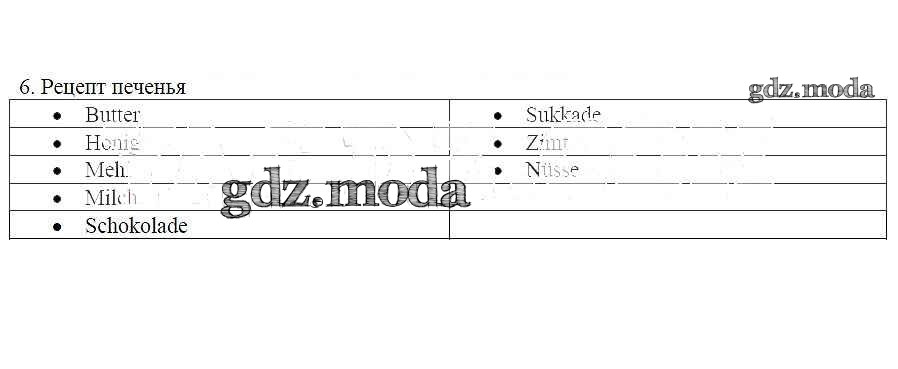 ГДЗ решение к заданию № 6 Немецкий язык 5 класс рабочая тетрадь Яцковская Г.В. Просвещение 2019 Часть 1, Часть 2, Часть 3, Часть 4 ФГОС бесплатно на гдз.мода!