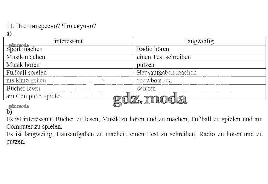 ГДЗ решение к заданию № 11 Немецкий язык 5 класс рабочая тетрадь Яцковская Г.В. Просвещение 2019 Часть 1, Часть 2, Часть 3, Часть 4 ФГОС бесплатно на гдз.мода!