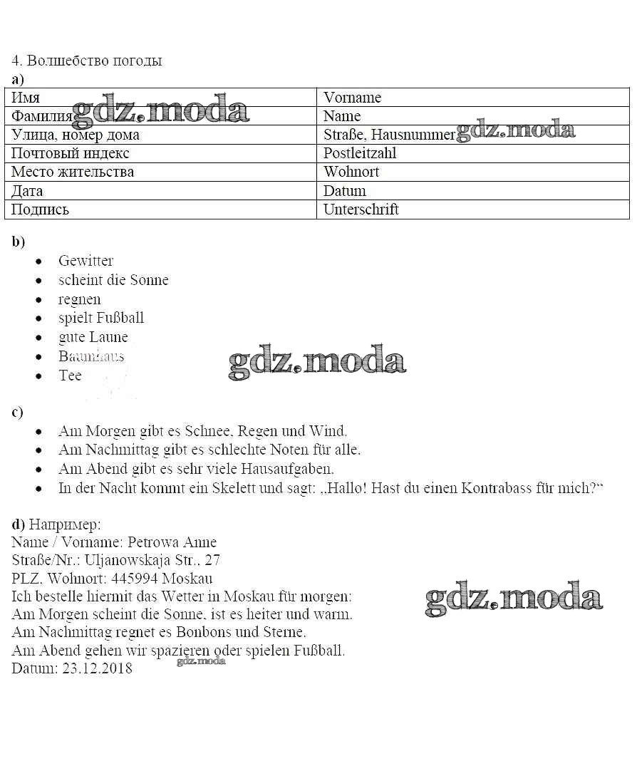 ГДЗ решение к заданию № 4 Немецкий язык 5 класс рабочая тетрадь Яцковская Г.В. Просвещение 2019 Часть 1, Часть 2, Часть 3, Часть 4 ФГОС бесплатно на гдз.мода!